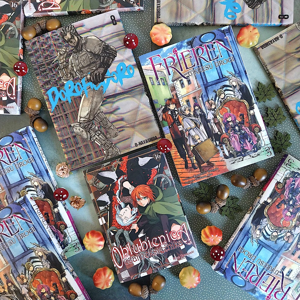 Dziś mamy dla Was trzy mangowe nowości: „Frieren. U kresu drogi" 3 oraz „Oblubienica czarnoksiężnika” 16 oaz „Dorohedoro" 8.Znajdziecie na półeczce miejsce na któryś z tych tomików? A może na wszystkie trzy?