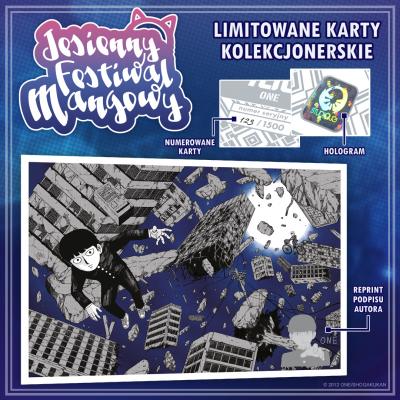 Przed Wami limitowana karta kolekcjonerska z serii „Mob Psycho 100"! Jeśli szukacie shonena zdecydowanie wybijającego się na tle innych, to dobrze trafiliście! Jest tu miejsce i na bijatykę, i na parodię, i na psychologiczną refleksję – takiej serii jeszcze nie było!Przypominamy, że aby otrzymać karty kolekcjonerskie, należy kupić prenumeratę na pierwszy tom minimum trzech festiwalowych serii do 28 października - szczegóły zabawy na stronie Jesiennego Festiwalu Mangowego!