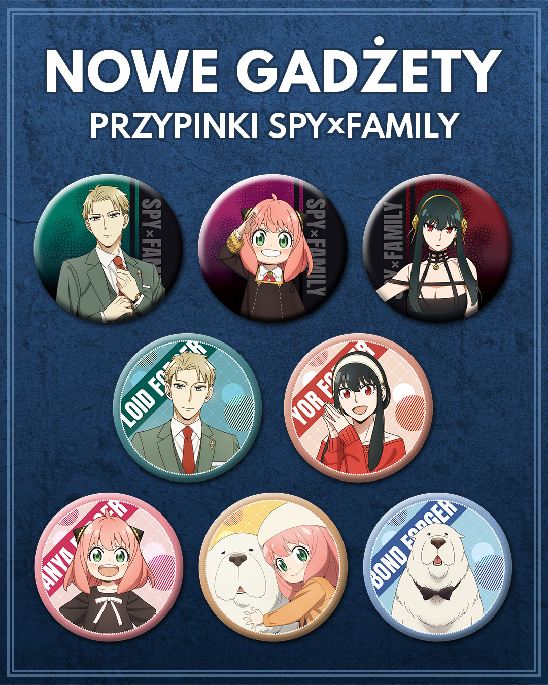 Nowe, licencjonowane gadżety właśnie dołączyły do asortymentu naszego sklepu!Tym razem przygotowaliśmy aż 8 wzorów przypinek z serii „Spy x Family”.