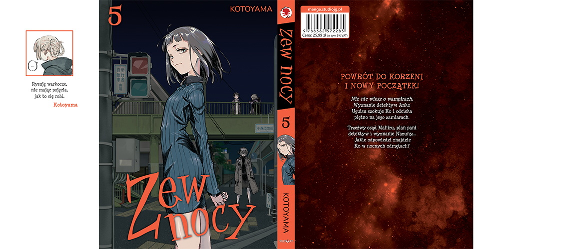 Szukacie przezabawnej, nietypowej komedii z akcją? Jeśli tak, z pewnością zaciekawi Was „Zew nocy" 5! Czy Ko uda się lepiej poznać naturę wampirów? Spieszymy z prezentacją obwoluty, a także zachęcamy do lektury początkowych stron.